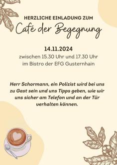| 15.30 – 17.30 Uhr | Cafe der Begegnung |