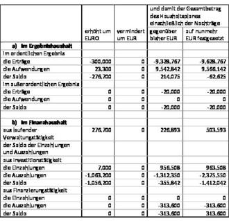 Der Finanzhaushalt ist weist einen Zahlungsmittelbedarf von 1.222.049 EUR aus. Dieser ist durch ausreichend Liquidität gedeckt.