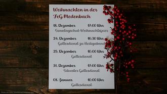 Weitere Informationen und kurzfristige Änderungen finden Sie auf der Homepage der FeG Medenbach, medenbach.feg.de!