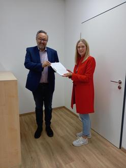 Im Zeitalter der fortschreitenden Digitalisierung wird immer mehr das Fachwissen von Spezialisten/innen benötigt. Daher hat die Gemeinde Breitscheid eine Kooperation mit der Oranienstadt Dillenburg geschlossen. Bürgermeister Lay freut sich auf die zukünftige Zusammenarbeit und überreicht Frau Madita Kania die unterzeichneten Verträge. Breitscheid möchte gemeinsam mit anderen Kommunen die Digitalisierung im Tourismus vorantreiben und unterstützt die Datenerhebung und –pflege auf der touristischen Digitalisierungsplattform Deskline 3.0. Deskline ist ein Informations- und Reservierungssystem zur Online-Bewerbung touristischer Betriebe und Leistungen. Ziel ist es, die Sichtbarkeit und Reichweite von Unterkünften, Gastronomiebetrieben, Sehenswürdigkeiten und Veranstaltungen im Internet zu stärken.