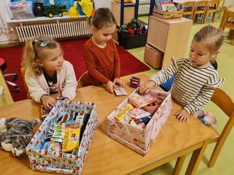 Gerne haben wir uns an der Aktion „Weihnachtspäckchen von Herzen“ der Ukrainehilfe Breitscheid, bei der ukrainische Kinder mit Päckchen aus Deutschland beschenkt werden, beteiligt. In den drei Kindergartengruppen wurden zu diesem Zweck Spardosen aufgestellt und das Vorhaben mit den Kindern im Stuhlkreis besprochen. Gemeinsam überlegten wir womit man den Gleichaltrigen, die unter anderen Lebensumständen aufwachsen, eine Freude bereiten kann. Passend zur beginnenden Laternenzeit und Sankt Martin wurde der Gedanke des Teilens aufgegriffen und vertieft.
