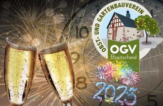 hiermit laden wir Euch sehr herzlich zum Neujahrsempfang 2025 des Obst- und Gartenbauvereins Breitscheid e.V. mit Jahreshauptversammlung, einer besonderen Ehrung und anschließendem gemeinsamen Abendessen mit geselligen Beisammensein ein.