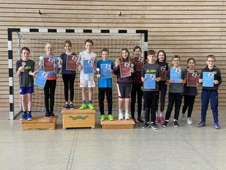Schulsiegerin der Mädchen wurde Hannah Fritz vor Sanna Thielmann auf Platz 2. Den dritten Platz erreichte Lena Bindemann. Die Platzierungen 4, 5 und 6 gingen an Marie Kurziel, Ronja Durm und Marie Hermann. Bei den Jungen konnte sich Elias Held durchsetzen. Er gewann das Turnier vor dem zweitplatzierten Luca Held und Lasse Kolb auf Rang 3. Die Plätze 4, 5 und 6 belegten Phil Rink, Antonius Schiedeck und Theo Funk.