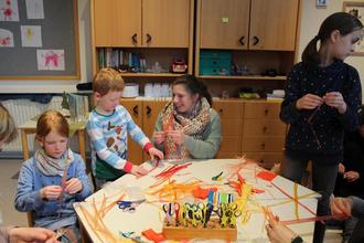 In chinesischen Schriftzeichen hatte eine Konfi-Begleiterin ein „Türschild“ für jedes Kind mit dem Wort Ni Hao zum Ausmalen vorbereitet. Ni Hao bedeutet „Guten Tag“ oder „Hallo“. Federführend wurde der Kindertag durch Steffi Best-Failing organisiert, die für die Durchführung Kita-Leiterin Claudia Sharifi sowie etliche Jugendliche des aktuellen Konfirmationsjahrgangs und deren Begleiter gewinnen konnte. Es wurden Lampions mit Troddeln, Friedenstauben und bunte Federbälle gebastelt, mit Essstäbchen gespielt und viel gesungen. Auch die Bewegung kam nicht zu kurz.