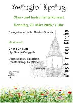 Am 29.03. findet um 17 Uhr aus unserer Reihe MUSIK IN DER KIRCHE ein Chor- und Instrumentalkonzert unter dem Motto: „Swingin´ Spring“ des Chors TONikum in der