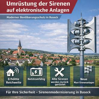 Die Gemeinde Buseck modernisiert ihre Sireneninfrastruktur für den Bevölkerungsschutz. In den kommenden Monaten werden mehrere bestehende Motorsirenen durch moderne elektronische Sirenenanlagen ersetzt.