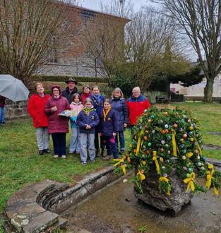 Am Samstag, den 14. März wurde in Beuern die Osterkrone auf den Brunnen in der Grünanlage unterhalb der evang. Kirche gesetzt.