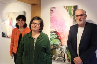 Abschließend kam Therre-Staal darauf zurück, was die Künstlerin beim Malen bewegt und was sie gerade in dieser Ausstellung greifbar und sichtbar machen möchte: „Kunst als Zufluchtsort in einer Zeit von Katastrophen, Klimawandel und Krieg. Bilder als Inseln der Hoffnung, festgehaltene und die Zeit überdauernde schöne Momente beim Betrachten und Nachspüren.“