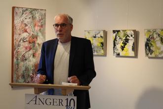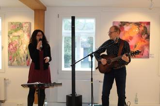 Das Thema der Ausstellung lautet „Blütenköpfe - Kopfblüten“. Dazu passende Songs interpretierte das Singer-/Songwriter-Duo Simone und Matthias Rau „Blossom be“ (Blüte sein). Dirk Haas, der Vorsitzende des Freundeskreis Anger 10, ging auf die Geschichte des Hauses ein.