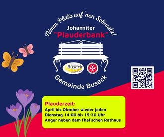 Nach den Wintermonaten in der Johanniter-Tagespflege kehrt die Plauderbank nun wieder an ihren gewohnten Platz im Freien zurück und ist ab April wieder am Anger neben dem Thal´schen Rathaus zu finden:
