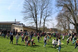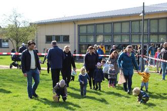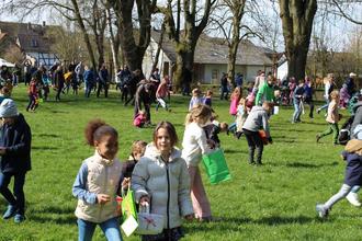 Was passiert, wenn der Osterhase heillos überlastet ist und sich deshalb wünscht, seinen Lieferdienst zumindest im Schlosspark outzusourcen? Er fragt freundlich bei der Jugendfeuerwehr Großen-Buseck an. Und die hat zum wiederholten Male zugestimmt und Meister Lampe, der ja schon bei der Veröffentlichung dieses Textes wieder arbeitslos ist, unter die Arme gegriffen. 2000 bunte Eier wurden versteckt. Es herrschte frühlingshaftes Wetter fast so wie in Bilderbüchern mit Osterhasengeschichten, entsprechend groß war der Andrang. Bevor Bürgermeister Michael Ranft per Megafon den Start für die Suche ausrief, bat er darum, dass zunächst nur jeweils fünf Eier gesammelt werden sollten. Zwei Mädels nahmen sich das zu Herzen und konnten dabei beobachtet werden, wie sie bereits gesammelte Eier wieder versteckten. „Ich hoffe, mein Rucksack wird so voll wie an Fastnacht, meinte in froher Erwartung bereits auf dem Hinweg ein anderes Kind. Für die Mädchen und Jungen (bis zum Alter von zehn Jahren, so der Wunsch der Gemeinde) war es eine große Freude nicht allein, sondern mit vielen weiteren Kindern auf Ostereier-Suche zu gehen. Für die Jüngsten bis drei Jahre wurde ein extra Pferch abgetrennt, damit sie nicht „überrollt“ werden. Wem eventuell Eier für die „grüne Soße“ fehlen, kann gerne noch zur „Nachlese“ kommen.