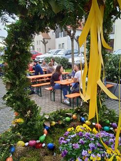 Bereits Tage zuvor hatten fleißige Helfer mit den Vorbereitungen begonnen. Ab elf Uhr stand dann alles für ein fröhliches Fest bereit: Zelt, Bierpilz, Grillstation und reichlich Biertischgarnituren waren aufgestellt. Zudem hatte das allgemeine Daumendrücken geholfen und der erste Mai kam mit wirklich prächtigem Wetter daher.