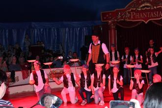 Jongleure beeindruckten mir ihrem Können, ebenso wie feuerspuckende Fakire. Die jungen Zauberer brachten das Publikum zum Staunen. Da der „Circus Phantasia“ grundsätzlich ohne Tiere auskommt, war das hervorgezauberte Kaninchen aus Plüsch. Die lustigen Clowns brachten die Zuschauer immer wieder zum Lachen. Aufwändige Kostüme trugen nicht nur die Akteure beim Drahtseilakt. Einen Höhepunkt bildeten zweifellos die am Trapez schwebenden Artisten. Als zum Abschluss gemeinsam die Zirkus-Hymne gesungen wurde, waren alle hochzufrieden.