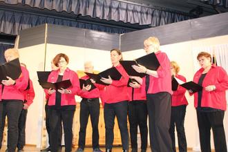 Beim anschließenden Afterglow im Foyer gab es von DJ Mc Gou (Matthias Haupt) ordentlich etwas auf die Ohren, das auch bei etlichen in die Beine ging. Wesentlich leisere Töne schlug der Chor „Felicita“ unter Dirigat von Markus Herzberger mit „Es ist ein Ros entsprungen“ und „Heil’ge Nacht“ zur Einstimmung auf den amüsanten Abend an. Bei „O du fröhliche“ intonierte „Felicita“ einen vierstimmigen Chorsatz, während das Publikum die Melodie sang. Mit dem Lied „Zur Weihnachtszeit“ aus dem Film „Der Polarexpress“ und „In the bleak midwinter“ beindruckte der junge Chor „Joyful Noise“, der seit der Gründung vor zehn Jahren unter der Leitung von Bettina Kühn steht.