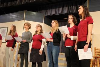 Das Schminken hatte Souffleuse Birgit Weber gemeinsam mit Renate Weber übernommen, für den richtigen Ton und das rechte Licht sorgte AEM, vertreten durch Dirk Haas.