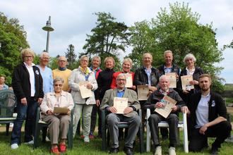 Bereits seit 60 Jahren halten Ingeborg Kratz, Margret Lück, Helga Menz, Renate Fischer, Erna Gall, Karlheinz Volk und Herbert Mootz dem Verein die Treue.