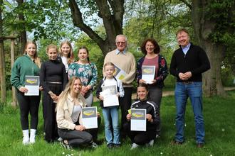 Außergewöhnliche Verdienste um den Verein sowie besondere sportliche Leistungen wurden jüngst durch die Gemeinde im Rahmen eines Ehrungsvormittags des Turnvereins Großen-Buseck im Schlosspark gewürdigt. Bürgermeister Michael Ranft begrüßte auch diejenigen, die schon zuvor für langjährige Mitgliedschaft geehrt oder das Sportabzeichen erlangt hatten. Sandra Sacher, die mehr als 25 Jahre als Übungsleiterin im TV fungiert, wurde durch den Bürgermeister mit einer Gold-Urkunde für außergewöhnliche Verdienste um den TV ausgezeichnet. Mit Fug und Recht darf man Reinhard Böttner als „Mister Sportabzeichen“ nennen. Er hat bereits zum 40. Mal die Voraussetzungen für das Deutsche Sportabzeichen erreicht. Ihm wurde dafür die vierte Gold-Urkunde verliehen.