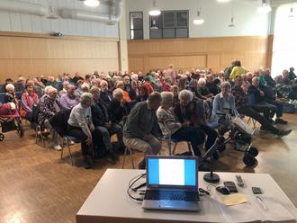 Die aus dem Behinderten- und Seniorenbeirat hervorgegangene Arbeitsgruppe „Busecker Mühlenweg“ hatte am 21. April zu einem Bildervortrag „Die Kleinmühle – früher mitten im Dorf“ ins Kulturzentrum Großen-Buseck eingeladen. Obwohl die Kleinmühle nicht mehr existiert - sie musste dem Zugang zum Freibad weichen - waren sehr viele Besucher gekommen.