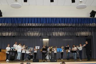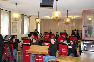 Hier gab es nicht nur ein reichhaltiges Kuchenbuffet, sondern später noch Auftritte von Ensembles der Musikschule Busecker Tal und abschließend melodiösen Swing und Jazz vom Michele Alberti Trio & Sängerin. Zudem waren Fotografien von jungen Künstlern der Jugendhilfe der AWO Gießen ausgestellt. Gemälde von Salah Aldlimi konnten gegen eine Spende erworben werden. Im kleinen Saal erfreute das Papiertheater „Kleine Auszeit“ mit gleich zwei Vorstellungen: Die Kinder ließen sich gerne ins „Blauland“ entführen.