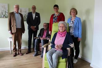 Schön sehen sie aus, bequem sind sie auch. Und sie haben ihren Preis! Diesen hat für die Hälfte der für den Erweiterungsbau der Tagespflegeeinrichtung erworbenen Liegesessel der Förderverein Kranken- und Pflegehilfe Buseck übernommen. Für vier der acht neuen Sessel hat Schatzmeisterin Edith Hollbach fast 5000 Euro vom Vereinskonto überwiesen. Dafür wurde ihr und dem ebenfalls anwesenden Fördervereins-Vorsitzenden Gerhard Hackel während des Festaktes zur Einweihung der neuen Räume von Marco Schulte-Lünzum gedankt. Der Regionalvorstand der Johanniter-Unfall-Hilfe erinnerte auch daran, dass der Förderverein bereits vor fünf Jahren die zehn Liegesessel im Erdgeschoss finanziert hat. Dem Dank schlossen sich der ehrenamtliche Regionalvorstand Helmut Freiherr von Schenk zu Schweinsberg und die Leiterin der Einrichtung Christina Herwig und ihre Stellvertreterin Alexandra Dujmovic an.