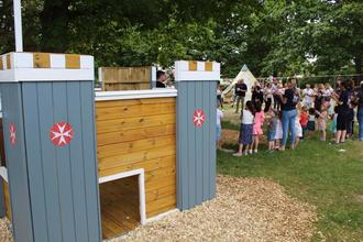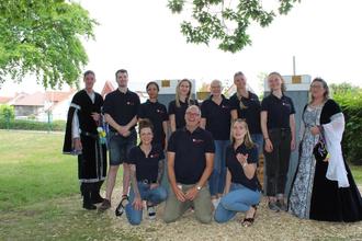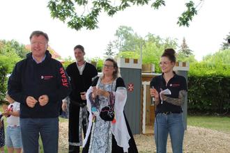 Gefeiert wurde am Freitagnachmittag das erste Sommerfest der Kita „Ritternest“, die seit einem halben Jahr als allererste Einrichtung dieser Art von den „Johannitern“ in Mittelhessen betrieben wird. Das Fest bot sich an, eine wenige Tage zuvor aufgebaute Ritterburg offiziell seiner Bestimmung zu übergeben. Passend zum Anlass hatten sich Erzieherin Corinna Loh und ihr Ehemann Sven, seit kurzem Haustechniker bei den „Johannitern“, fürstlich-mittelalterlich gewandet.