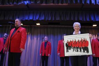 Die „Mainzer Hofsänger“ im Kulturzentrum, das war ein Novum. Zur Feier des 160-jährigen Jubiläums hatte die Svgg. „Eintracht-Germania Großen-Buseck“ Deutschlands berühmtesten Fastnachtschor für ein gemeinsames Konzert gewinnen können. Versprochen und gehalten wurde der „Zauber der großen Stimmen“. Die zwölf Ausnahmesänger haben ihrem vorauseilenden guten Ruf alle Ehre gemacht. Sie kamen nicht als Bajazzos in bunten Kostümen wie man sie seit 1956 im Fernsehen aus dem Finale von „Mainz bleibt Mainz“ kennt, sondern in traditioneller Chorkleidung und mit einem weltlichen Repertoire.