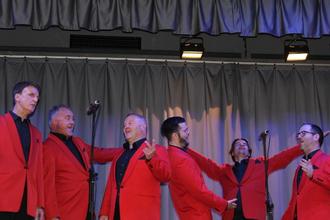 Vom zweiten Bass bis hoch zum ersten Tenor reicht über drei Oktaven die Stimmlage des Ensembles. Jeder Sänger überzeugte auch als Solist mit herausragender Stabilität. Das Programm bot gängige, aber nur selten auf diesem Niveau gehörte Lieder wie „Mondlicht“ aus Webbers Musical „Memory“, Maria und Tonight aus West-Side-Story von Leonhard Bernstein oder „Dancing Queen“. Zu den großen Stimmen passten die großen Gesten.