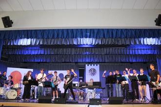 Für etliche Mitwirkende der Bläser-Band 9/10 war es der letzte gemeinsame Auftritt. In einer Orchesterbesetzung mit Keyboards, Drums, Gitarren und Bass füllten sie den Saal mit einem mächtigen Sound. Dirigentin Ella Pitkowski und Schulleiter Dieter Maier strahlten über das ganze Gesicht, anhaltende Zugabe-Rufe blieben nicht ungehört: „Sweet Child of mine“ von Guns N’Roses wurde wiederholt. Für Beschallung und Beleuchtung war AEM verantwortlich. Die Ensemble-Arbeit wird finanziell von Land und Bund unterstützt.