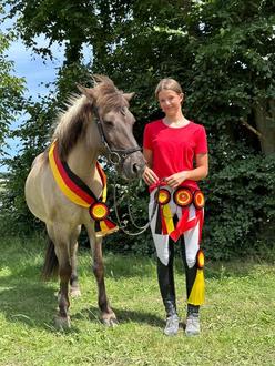 Annie Rittershaus aus Beuern konnte mit ihrer Stute Raekja von Ellenbach bei der Deutschen Jugendmeisterschaft der Islandpferdereiter (DJIM) Mitte Juni in Kaufungen erneut den Deutschen Meistertitel in der Vielseitigkeitskombination gewinnen. Bereits im Vorjahr war ihr dies mit Kolbra vom Barenstein auf dem Gestüt Falkenegg im Sauerland gelungen.