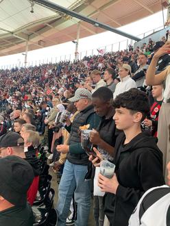 Mit einer Bratwurst in der Hand und dem Anpfiff des Spiels im Ohr, nahmen sie gespannt ihre Plätze ein. Bis zum Schlusspfiff war ihre Begeisterung deutlich spürbar.