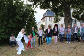 Die Ansage der Sängerin, dass sich der instrumentale Abspann bei „Chiquitita“ wunderbar zu einem Sirtaki eignet, stieß bei den ohnehin Tanzfreudigen unter der alten Linde auf offene Ohren. Kurz: Die Stimmung war bestens, die Ausrichter zufrieden. Der Inhalt des Spendenglases ist für die weitere Sanierung der Brandsburgscheune bestimmt.