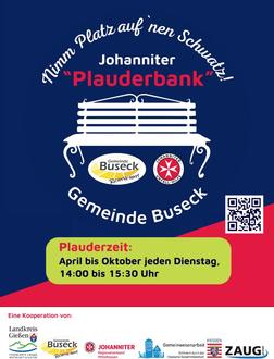 Die Plauderbank wird von der Johanniter-Unfallhilfe gespendet. Das Projekt wird zudem unterstützt von der Gemeinwesenarbeit Buseck, dem Behinderten- und Seniorenbeirat, der Gemeinde Buseck - Jugendpflege Buseck, dem Förderverein Kranken- und Pflegehilfe Buseck sowie engagierten Bürgerinnen und Bürgern.