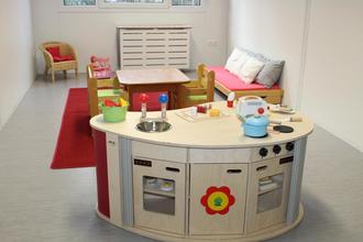 Zum „Tag der offenen Tür“ der neuen Modul-Kindertagesstätte „Wundertüte“ in der Nelkenstraße in Großen-Buseck (gegenüber den Hochhäusern) kamen neben interessierten Eltern auch zahlreiche Kommunalpolitiker und Erzieherinnen aus den anderen Busecker Einrichtungen. Sie alle wollten wissen, was in der „Wundertüte“ steckt. Von außen unscheinbar, eben in Modulbauweise, war die Überraschung groß und durchweg positiv. Die hellen Gruppen- und Differenzierungsräume sind geschmackvoll eingerichtet, die Farben der Spiel-Teppiche in Pastelltönen aufeinander abgestimmt, Türen und Wände fein bebildert. Bei der bedürfnisorientierten Einrichtung hatten die Erzieherinnen ihre Hände mit im Spiel. Auch bei der Beschaffung der Spielgeräte wurden viele ihrer Ideen berücksichtigt.