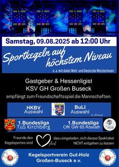 Sportwart Marc Hammel und sein Team können sich sehr glücklich schätzen, denn am 09.08.25 findet auf der Kegelbahn in Großen Buseck ein Vorbereitungsturnier auf die neue Hessenligasaison statt. Bereits um 12:00 Uhr sollen an diesem Tag die Kugeln rollen. Geplant sind 4er Mannschaften im 120er Kombimodus.