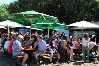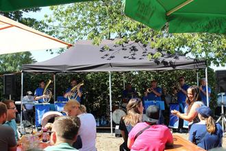 Da auch in der diesjährigen Planungsphase noch eine gehörige Portion Unsicherheit mitschwank, haben die Veranstalter auf ein Samstagsabend-Event mit Rock und Pop verzichtet. Mit der Entscheidung, die „Kirmes-Ersatz-Veranstaltung“ an die Grillhütte zu verlegen, haben die Verantwortlichen voll ins „Schwarze“ getroffen. Etwas höher und direkt am Wald gelegen, sind dort sommerliche Temperaturen gut auszuhalten. Der angrenzende Sportplatz bietet Platz für eine Hüpfburg und zum Toben für die Kinder. Ein weiterer Vorteil: Soweit die Besucher nicht ohnehin zu Fuß oder mit dem Fahrrad kamen, standen für sie auf dem nahegelegenen ehemaligen Verkehrsübungsplatz der Verkehrswacht Gießen (bis 1994) jede Menge Parkplätze zur Verfügung. Die Verpflichtung der „Original Böhmischen 7“ mit acht Musikern hatte Schlagzeuger Manfred Lepper (ein ehemaliger Oppenröder) eingefädelt.