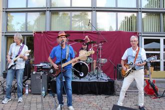 Die Musiker hatten in der Presse bereits ab 17 Uhr „leise Töne“ zur Unterhaltung angekündigt. Schon eine Stunde vor dem üblichen Auftrittsbeginn spielten sie rein instrumental die Hits der britischen Rockband „The Shadows“. Um 17.15 Uhr waren bereits alle 100 gestellten Plastikstühle und die Steine um das Atrium besetzt. Erste Besucher holten sich die stoffbezogenen Stühle aus dem Kulturzentrum, andere machten es nach. Am Ende waren nicht nur der große Saal und das Foyer „abgegrast“, sondern sogar Stühle aus dem vermieteten Saal 2 mitgenommen worden. Hierhin hatte die Foto-AG Buseck zu einem Dia-Vortrag über Indien eingeladen. Referent Dirk Haas nahm es mit Humor. Als Initiator freut sich der ehemalige Bürgermeister natürlich sehr über den Erfolg der Musikreihe. „Wir würden ja gerne weitere Stühle bestellen, doch leider fehlt uns dafür im Kulturzentrum der Lagerplatz“, hieß es aus der Verwaltung.