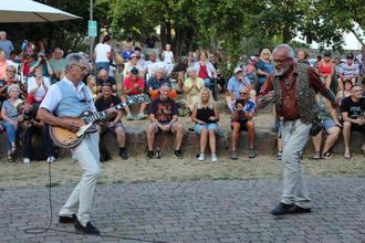 Es war wohl das längste und vielleicht das bisher am besten besuchte Konzert in der Reihe „Musik im Park“, das am Donnerstag bei idealem Open-Air-Wetter die legendäre Band „Misfits“ gab. Als Dr. Ulrich Hentschel punkt 18 Uhr zum offiziellen Show-Akt „50 Years of Rock and Roll“ begrüßte, brannte schon nach dem ersten Satz stürmischer Applaus auf. Die vier Musiker mussten sich dem Publikum nicht erst vorstellen: Wer „Jerry“ Faust, Mick Keller, Andy Herrchen und Hentschel nicht kennt, der muss über Jahrzehnte um Discos, Musikkneipen und Glastanzdielen einen weiten Bogen gemacht haben. Schon in den 60-ern haben die „Misfits“ einen Steinwurf vom Schlosspark entfernt den ehemaligen Saalbau Wagner gerockt. Etliche Junggebliebene aus dieser Zeit konnten sich nur allzu gut daran erinnern. Die Stimmung war einfach prima, so locker, so gelöst. „Das hier ist doch ein echter Kultursommer und zwar mit Musik, die nicht unter die Gürtellinie geht“, sagte Hentschel augenzwinkernd.