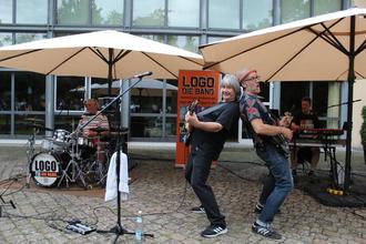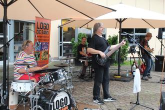 LOGO - die Band, die im Vorjahr das 30-jährige Bühnenjubiläum feiern konnte, kann locker-leicht fünf Stunden mit ihrem Repertoire füllen. Im Herbst und Winter wollen sie sich neue Songs erarbeiten. Hahn und Marc Hartel (Drums) haben 1992 die Band gegründet. Vor 22 Jahren stieß Markus Herzberger (Keyboard, Gesang) dazu, Mitte 2019 Michael Faust, ein alter Bekannter aus gemeinsamen Linus-Zeiten, der tiefe Töne dem Bass entlockt. Hahn (Gesang, Gitarre) moderierte, wobei man da eher von Geplauder unter Freunden sprechen sollte.