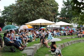 Mut zum Risiko wurde belohnt: LOGO - Die Band gab bei bester Stimmung und trüben Wetter am Donnerstag ein über zweistündiges Konzert. „Leute, es ist kuschelig warm, da macht der Regen nicht viel aus. Hoffen wir dennoch darauf, dass sich die Wetter-Apps täuschen. Wenn irgendwann kein Publikum mehr da ist, hören wir einfach auf,“ sagte Frontmann Michael Hahn. Einzelne Tropfen fielen schon nach dem dritten Titel. Als es dann später stärker zu regnen anfing, spannten die Besucher ihre Schirme auf und zogen Regenjacken an. Sogar Sitzkissen mussten als Regenschutz herhalten, drei Besucher zogen sich in ein extra aufgebautes kleines Zelt zurück. An „Tagen wie diese“ haben „Die toten Hosen“ schließlich schon Open-Air-Konzerte unter schlechteren Wetterbedingungen gespielt, warum sollte es nicht auch bei „Musik im Park“ klappen. Und das tat es. Von den weit über einhundert Besuchern blieben 80 Prozent bis zum Konzertende. Da hatte der Regen längst aufgehört, die Stimmung stieg weiter und es wurde sogar getanzt.