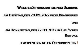 Wenn wir Sie jetzt neugierig auf unser neues und altes Medienangebot gemacht haben, dann laden wir Sie herzlich zur Wiedereröffnung unserer jeweiligen Standorte ein: