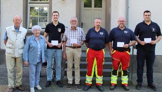 205 Euro nahm Kevin Döll für die Jugendfeuerwehr Großen-Buseck entgegen. Die Nachwuchsarbeit der Spielleute der Busecker Schlossremise wurde ebenfalls mit 205 Euro unterstützt. Hierfür bedankte sich Ausbildungsleiter Lars Ole Ruppel. Über jeweils 400 Euro für die Vereinskasse des Fördervereins „Voraushelfer der Freiwilligen Feuerwehr Buseck“ freuten sich Torsten Hansmann und Detlef Klein und für den Förderverein Kranken- und Pflegehilfe Buseck tat dies Gerhard Hackel.