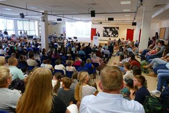 Währenddessen erhielten die Eltern erste wichtige Informationen rund um den Schulstart. Anschließend lud der Elternbeirat gemeinsam mit dem Förderverein bei Kaffee und selbstgebackenem Kuchen zum Austausch in die Mensa ein.