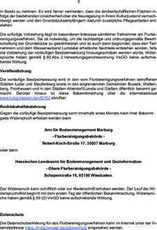 Öffentliche Bekanntmachung zur Vorläufigen Besitzeinweisung; Flurbereinigungsverfahren Lollar-Staufenberg-Lumda