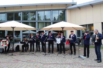 „Über uns der blaue Himmel“ sang der Chor. Der war jedoch wolkenverhangen, dazu frische 14 Grad. Gemäß dem norwegischen Sprichwort „Es gibt kein schlechtes Wetter, nur falsche Kleidung“ hatten sich die rund 80 Besucher darauf eingestellt. Textsicher sangen viele mit, manchmal ging ein leichtes Schunkeln wie ein sanfter Wellengang durch die Reihen. Lieder wie „Seemann, deine Heimat ist das Meer“, „Fährt ein weißes Schiff nach Hongkong“ und „Abschied vom Meer“ bleiben eben im Ohr hängen.