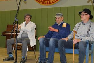 Avisiert als die „Drei Schwätzer“ tauschten sich drei Sänger über den neuesten Dorfklatsch aus. Als die Schelle des Eiswagens ertönte, wurde einer zum Eisholen geschickt. Dass der Hinweis, die gewünschten Sorten unbedingt aufzuschreiben, seine Berechtigung hatte, wurde spätestens dann deutlich, als der Gesandte mit Bockwürsten im Brötchen zurückkam.