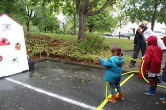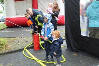 Feuerwehr und Wasser sind - soweit es nicht um Überschwemmungen geht - grundsätzlich eine gute Kombination. Doch am „Tag der offenen Tür“ der Freiwilligen Feuerwehr Oppenrod hätte sich der Vereinsvorsitzende Heiko Girnhard etwas weniger Wasser von oben gewünscht. Mit der Besucherresonanz war er dennoch zufrieden. Das Feuerwehrgerätehaus bot ausreichend Raum zum Sitzen und Verweilen im Trockenen. Hier gab es neben privaten Gesprächen auch Führungen und Informationen zur Feuerwehrarbeit. Draußen konnten sich Technikinteressierte die Fahrzeuge erklären lassen. Natürlich durften auch mal Kinder darin „Probesitzen“. Für sie stand zudem eine Hüpfburg zum Toben zur Verfügung. Sie konnten sich im Schlauchkegeln ausprobieren oder an einer kleinen Spritze. Hier galt es möglichst dorthin zu zielen, wo brennbare Stoffe wie Holz oder Gardinen an der von den Feuerwehr-Aktiven selbst gewerkelten „Hauswand“ aufgebracht waren. Trotz der ungemütlichen Wetterbedingungen hieß es hier zeitweise Schlangestehen. Nebenan gab es Buttons, ein Angebot das nicht nur von den Jüngsten genutzt wurde. Mit deftigen Speisen und einem Kuchenbüffet war für das leibliche Wohl bestens gesorgt worden. Außerdem lud ein Weinstand zu einem guten Tropfen ein.