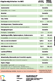 - Höchstmenge: 100 kg/Anlieferung, je Gefäß: 20 kg bzw. 20 l Inhalt.