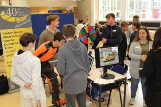 Es profitieren stets beide Seiten. Ehemalige Schüler der IGS stehen seit Jahren als Vertreter „ihrer“ Firmen an den Info-Ständen. So auch am Donnerstag. Lisa Hansmann ist den zuvor beschriebenen Weg gegangen. „Vorher hatte ich überhaupt keinen Plan“, berichtet sie. Nun wurde sie nach der dreijährigen Ausbildung zur Augenoptikerin von Optik Weis übernommen. Auch Melanie Gebhardt ist ehemalige IGS-Schülerin. Nach dem Fach-Abitur macht sie derzeit eine verkürzte Ausbildung zur Verwaltungsfachangestellten bei der Gemeinde Buseck. Einer Übernahme nach ihrem Abschluss im nächsten Sommer in den Fachdienst „Bau- und Liegenschaften“ sollte nichts im Wege stehen. Luca Klaar hat erst mit seiner Ausbildung bei der Gemeinde begonnen. Auch in seinem Fall gab die Kick-Off-Veranstaltung den Anstoß. Dies gilt ebenso für Kevin Walter, Verfahrensmechaniker im dritten Ausbildungsjahr der Firma Bänninger.