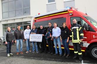 Eine Spendenübergabe fand am „Tag der offenen Tür“ der Freiwilligen Feuerwehr Großen-Buseck statt. Busecker Gewerbetreibende übergaben insgesamt 2.350 Euro. „Neben der Normausstattung gibt es immer auch Wünschenswertes, was uns bei Einsätzen schneller und leistungsfähiger macht“, erklärten Wehrführer Dominik Panz und sein Stellvertreter André Mattern. Bereits gekauft wurde ein Glasschneider und ein Akku-Schlagschrauber mit Zubehör. Weitere Kleinausrüstung soll noch angeschafft werden. Das Foto zeigt von links: Ben Weis von Optik-Weis, der eine Brillenhygienestation zur Nutzung nach Einsätzen zur Verfügung gestellt hat. Finanzielle Zuwendungen kamen von Martin Stein (Holzbau), Fahrschule Eckhard Neumann (vertreten durch Denny Meyer), Sekura Fenster (vertreten durch Klaus Schäfer) sowie (nicht anwesend) REWE Uras, Paul Strauch (Tanz- und Event-Club Magic) und Petra Hahn (Mengin Tankstelle). Bürgermeister Michael Ranft, Vereinsvorsitzende Annalena Seipp und ihr Stellvertreter Jonas Volk freuen sich über die Spende.