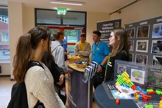 Das Angebot war äußerst breit gefächert von Handwerks- und Industriebetrieben über Dienstleistungsbetriebe bis zu Krankenhäusern und sozialen Einrichtungen. An den meisten Ständen kam es zu direkten Gesprächen von Schülerinnen und Schülern mit Auszubildenden, die von den Unternehmen mitgebracht wurden.